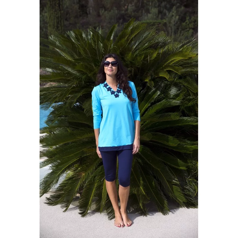 Découvrez notre tunique pour burkini  bleue made in France.