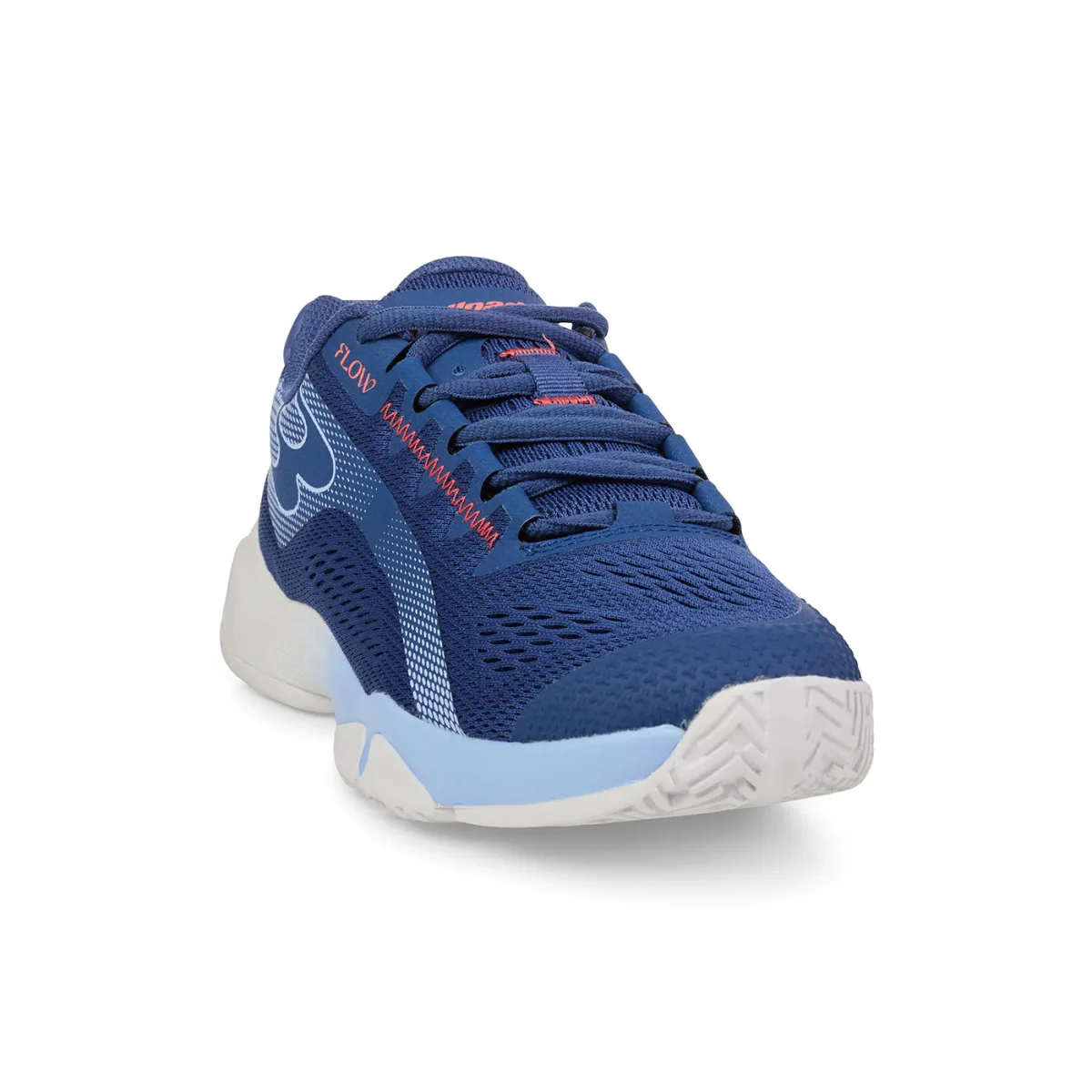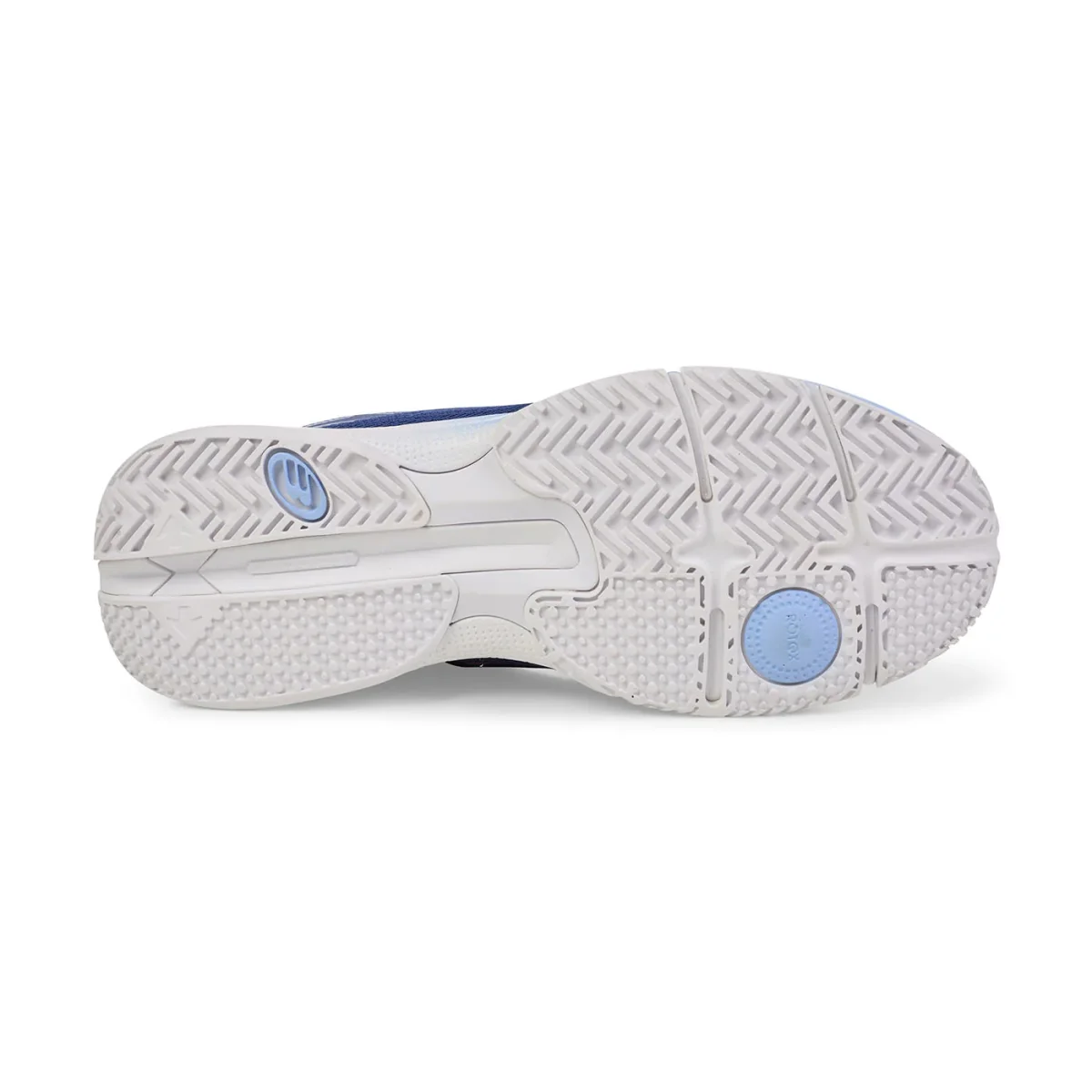 Bullpadel présente les chaussures de padel pour femme Flow 25I Bleu, le modèle officiel d’Alejandra Salazar. Elles sont conçues pour offrir légèreté, respirabilité et confort à chaque mouvement sur le court.