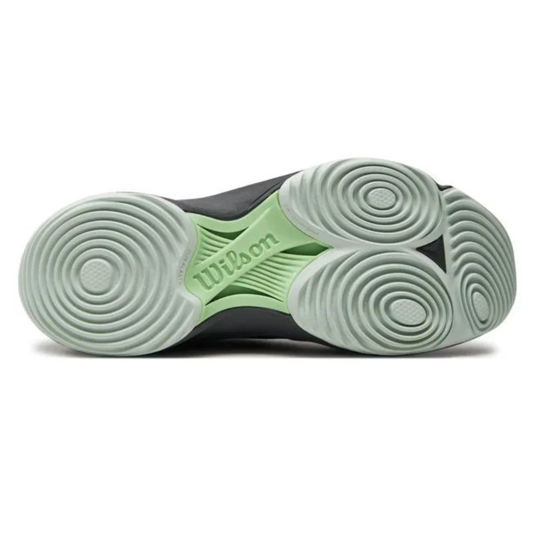 La semelle intermédiaire en caoutchouc de haute densité favorise l’amorti lors des réceptions de sauts, tandis qu’un système anti-torsion réduit les risques de faux mouvements, particulièrement utile au padel.