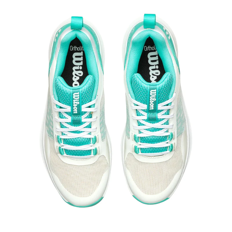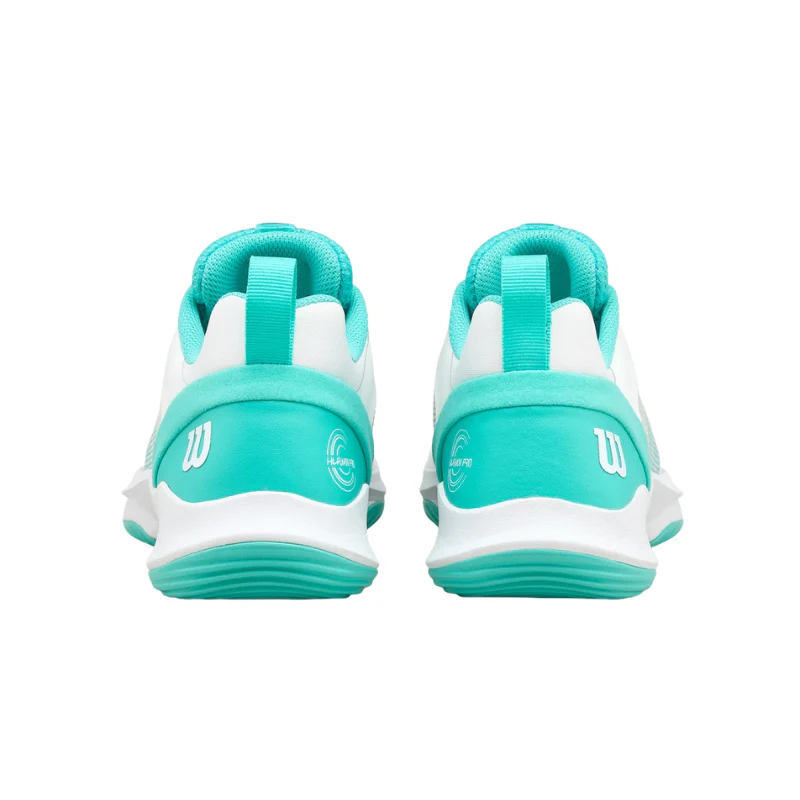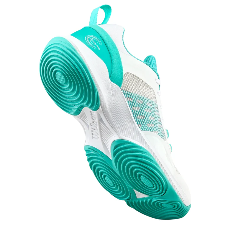 Découvrez la nouvelle paire de chaussures de padel Hurakn Pro V2 Blanc/Bleu, un modèle spécialement conçu pour les femmes et présenté par la célèbre marque Wilson.