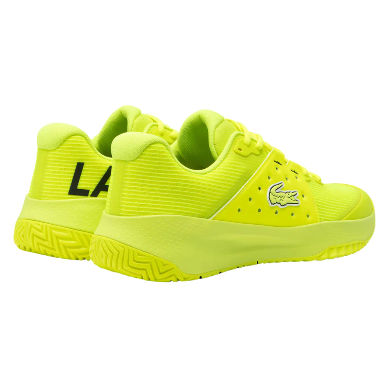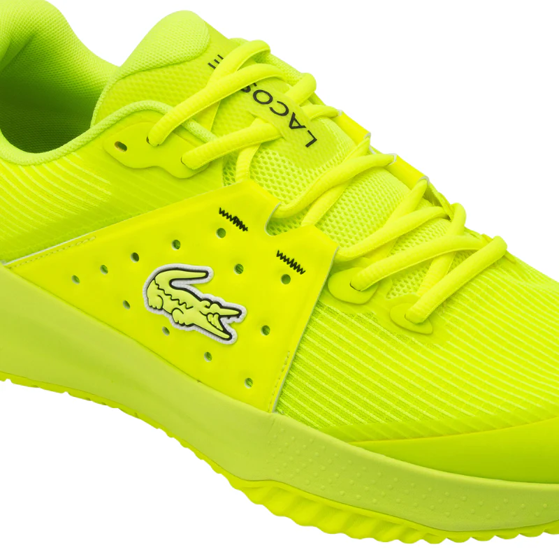 Lacoste dévoile les chaussures de padel Power Serve pour homme, une version dynamique et pleine d’énergie en jaune éclatant.