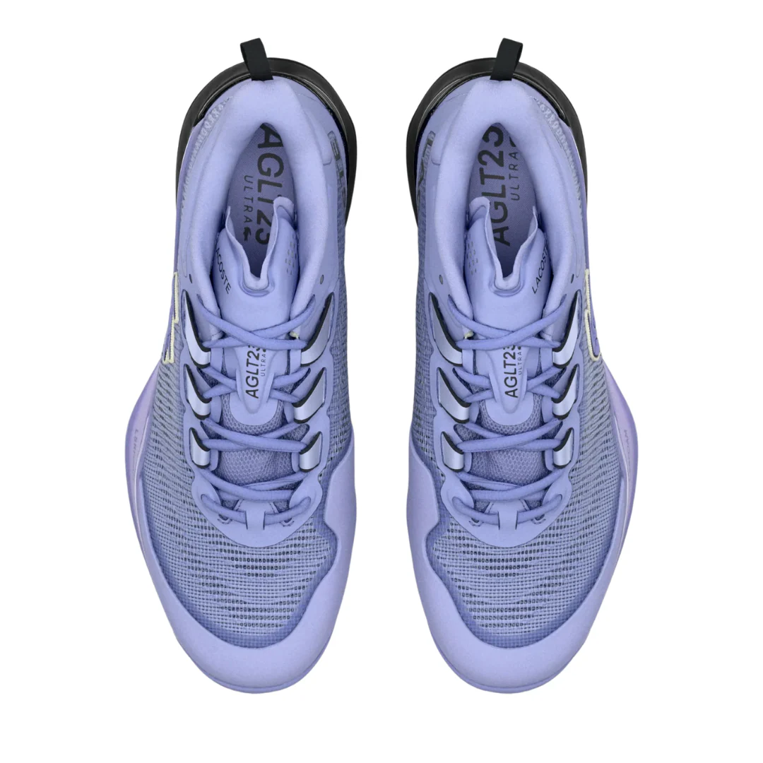 Lacoste dévoile les chaussures de padel Ultra pour homme, une version saisissante en violet profond rehaussé de détails noirs qui ne manquera pas d’attirer les regards sur le court.