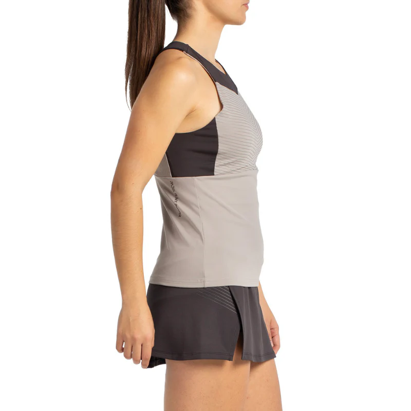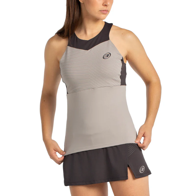 Découvrez le débardeur Bullpadel Erare dans sa version gris, subtilement teintée de brun pour un style à la fois sobre et original sur le terrain.