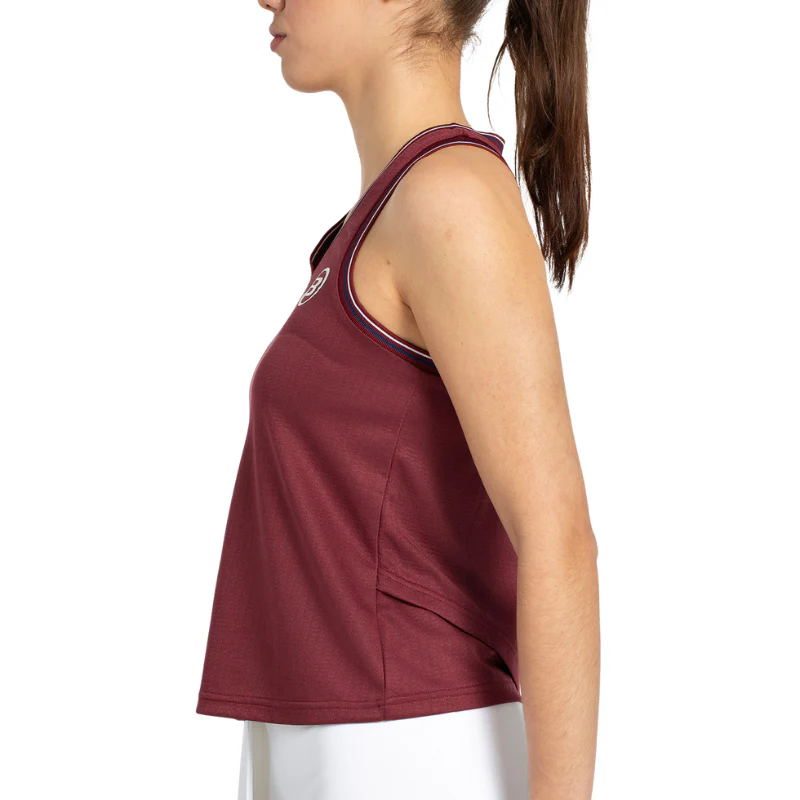 Ce débardeur couleur bordeaux est orné des logos de la joueuse et de sa raquette à l’avant et à l’arrière, affichant clairement votre soutien.