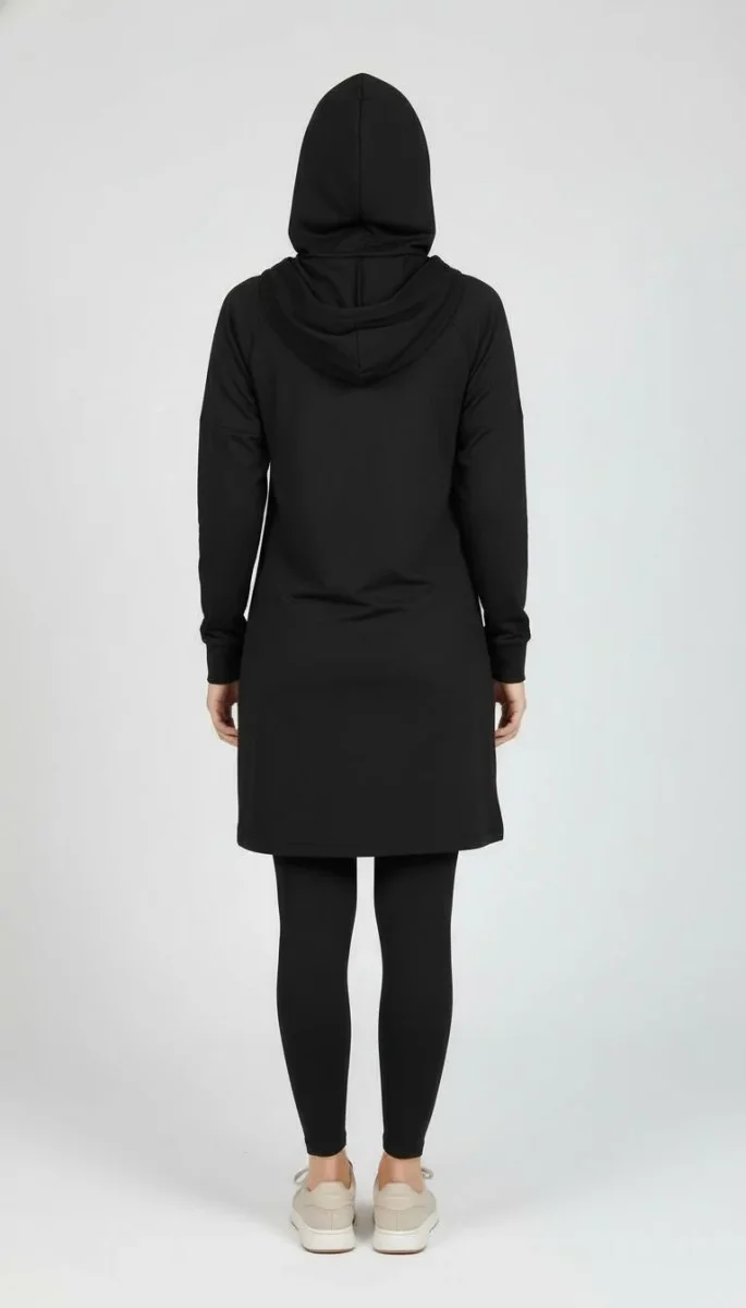 Tunique longue sport HAYA Caractéristiques du produit : Matière : tissu technique doux, respirant et extensible, conçu pour offrir confort et liberté de mouvement Composition : 88 % polyester / 12 % élasthanne Coupe : tunique longue et fluide, couvrante, idéale pour la mode modeste et les femmes recherchant des vêtements pudiques Col : col couvrant apportant maintien et confort sans rigidité Coloris disponibles : Noir Tailles disponibles : S – M – L Utilisation : sport, marche, fitness doux et activités du quotidien Style : vêtement de sport modeste, élégant et facile à porter Livraison : sous 48 heures