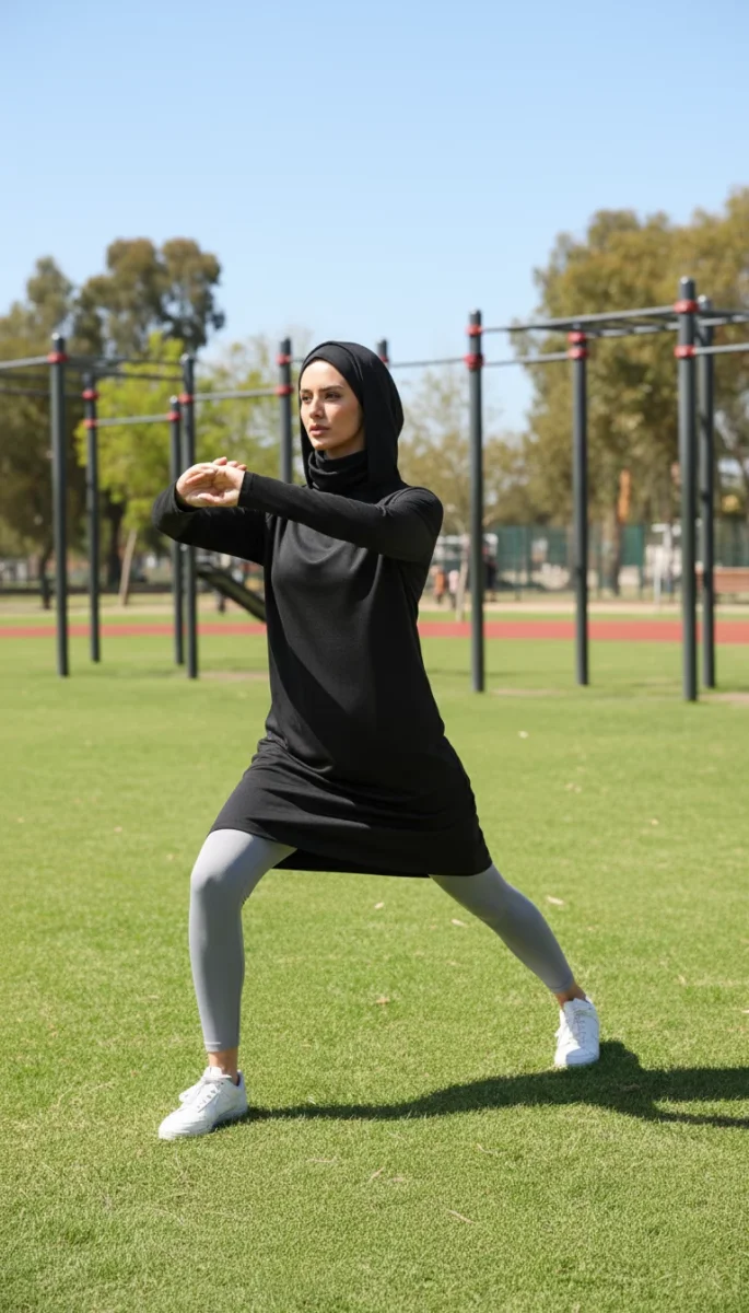 d’une tenue de sport couvrante, confortable et élégante. Idéale pour la pratique
