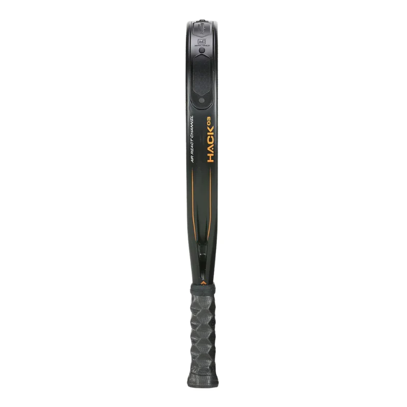 Si la Hack 02 Ă rencontrĂ© un immense succès, ce n’est pas seulement grâce Ă son Ă©gĂ©rie, mais bien grâce au technologies prĂ©sentes. La Hack 03 est donc une raquette de pointe de forme de diamant et donc optimisĂ© pour la puissance sans omettre un bon contrĂ´le.