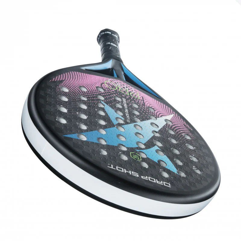 La tranche de la raquette possède un renfort. Cette zone est la plus fragile sur les raquettes de padel. Il est donc primordial qu’elle soit protĂ©gĂ©e. Drop Shot nous fait le plaisir de la renforcer d’eux mĂŞme.