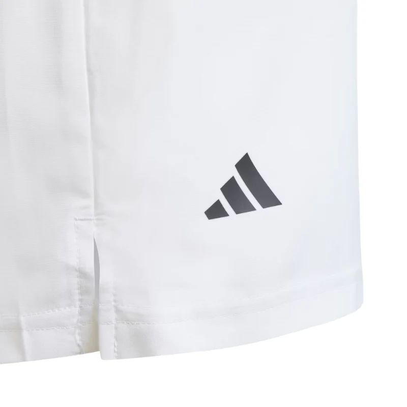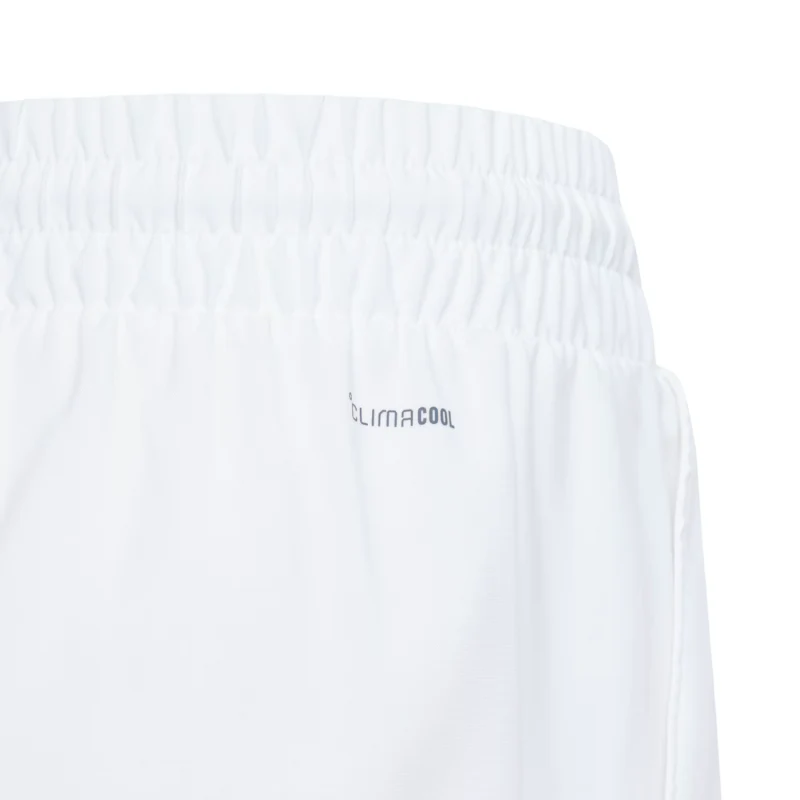 Découvrez le short Adidas junior B Club 3S ClimaCool blanc, conçu pour offrir aux jeunes athlètes confort et liberté de mouvement sur le court.
