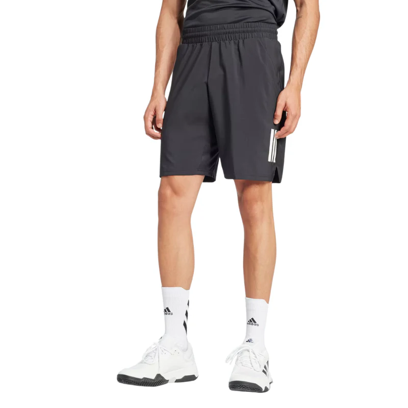 Découvrez le short Adidas Club 3 Stripes Noir, conçu pour allier confort, performance et style sur le court.