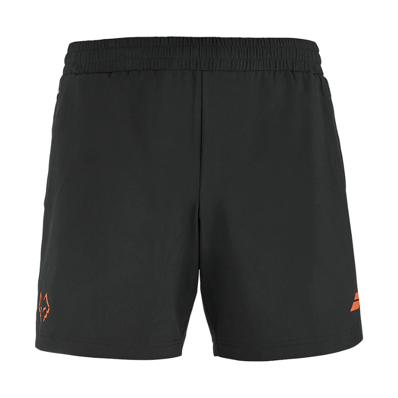 Ce short entièrement noir est rehaussé de logos Babolat et Lebrón en orange, apportant une touche graphique dynamique et moderne.