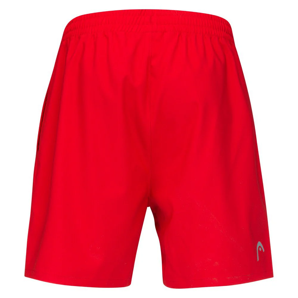 De couleur rouge, ce short est doté de deux poches latérales résistantes.