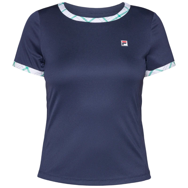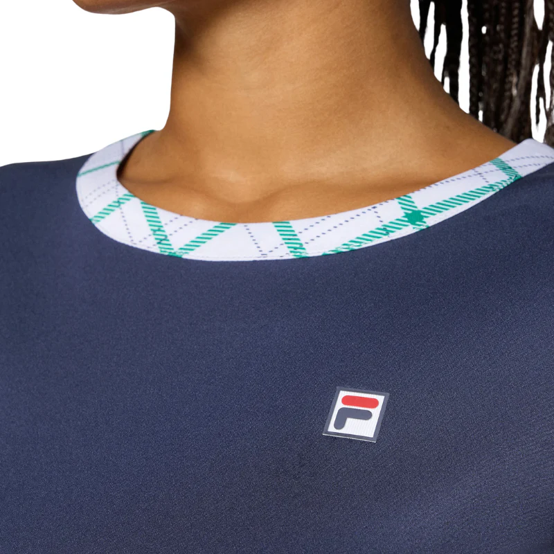Fila est heureux de vous présenter le t-shirt Yamila Bleu Marine/Vert, spécialement conçu pour les femmes.