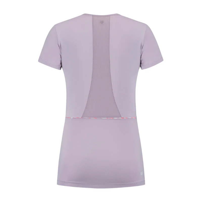 Découvrez le t-shirt K-Swiss Advantage Tee Violet pour femme, conçu pour allier confort et performance sur le court.