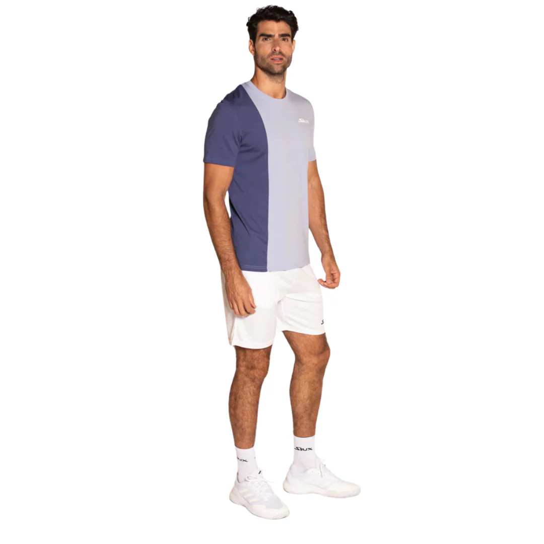 Son design asymétrique joue avec deux teintes de bleu pour un rendu visuel original, rehaussé simplement du logo Siux sur la poitrine.