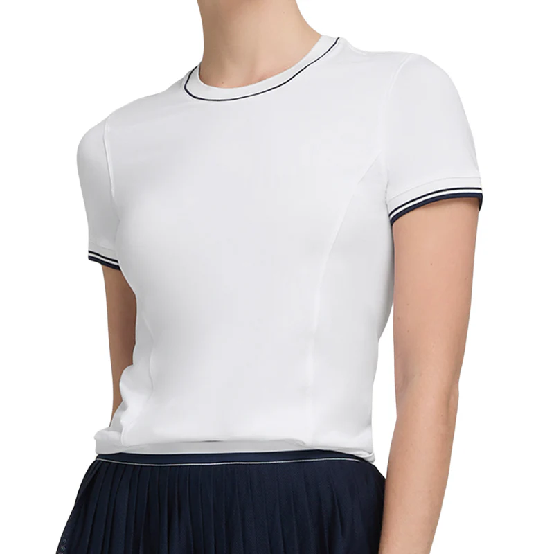 Son coloris blanc éclatant offre une base classique et intemporelle, finement soulignée par des liserés noirs contrastants pour une finition graphique et soignée.