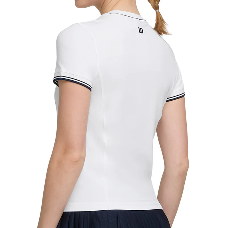 Alliez performance et sophistication avec le t-shirt Wilson Team Seamless Tee blanc pour femme.