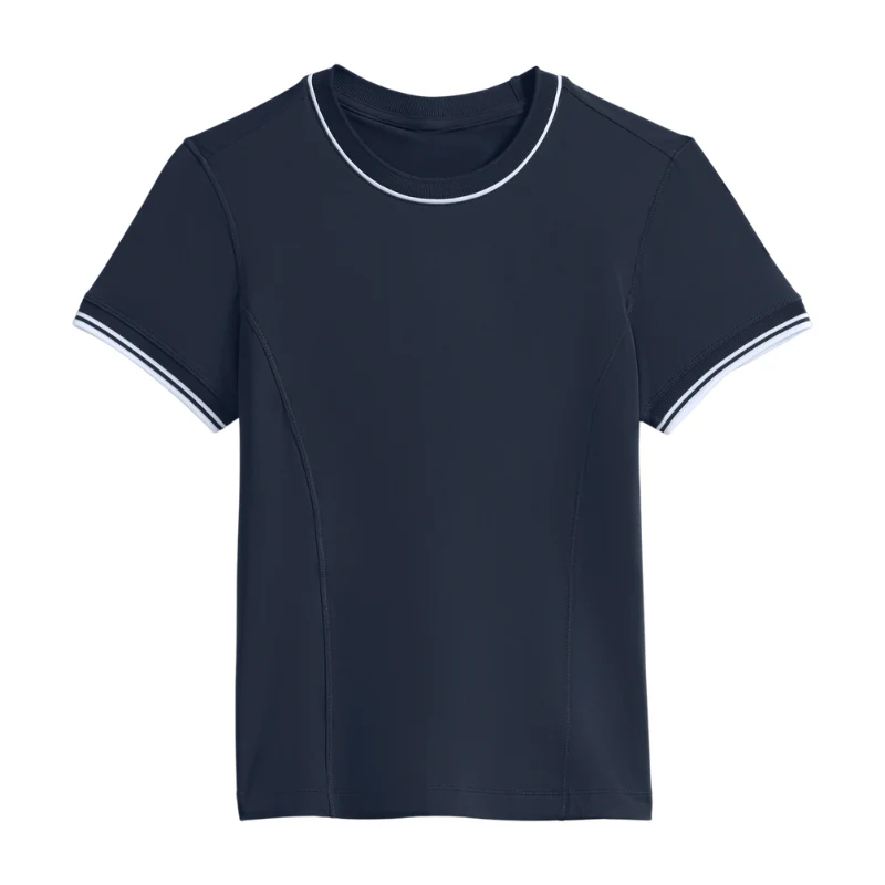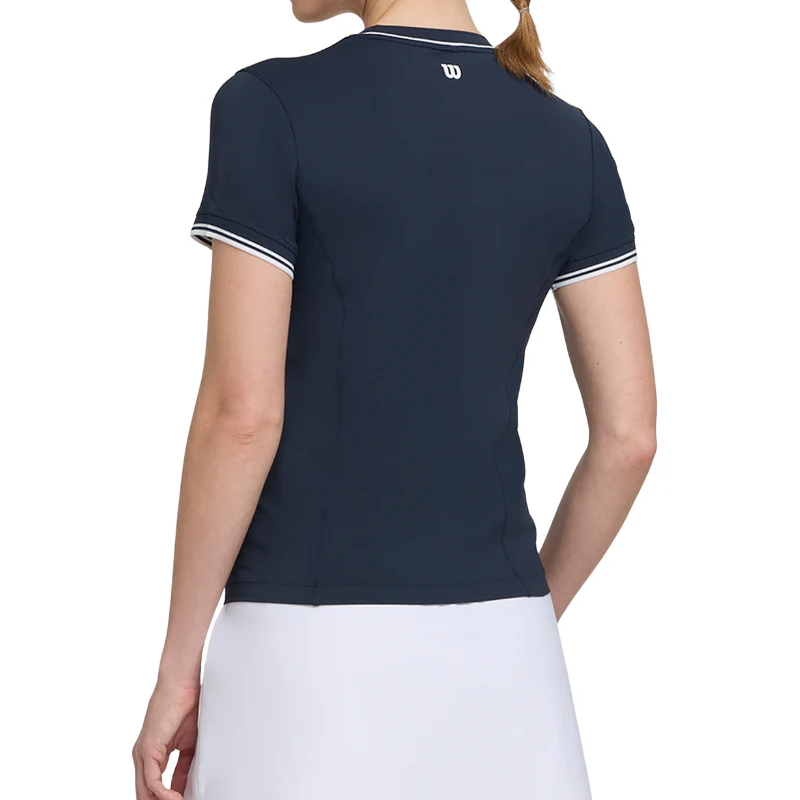 Wilson est heureux de vous présenter le t-shirt Team Seamless Tee Bleu Marine, un modèle spécialement conçu pour les femmes actives et exigeantes.