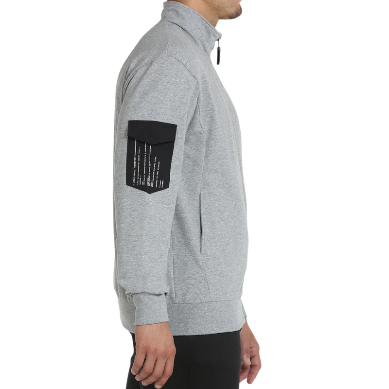 Cette veste grise se distingue grâce à une poche noire ornée d’écriture blanche, placée sur la manche. Son design très chic en fait un excellent choix, que ce soit pour un usage quotidien ou lors de vos échauffements de padel.